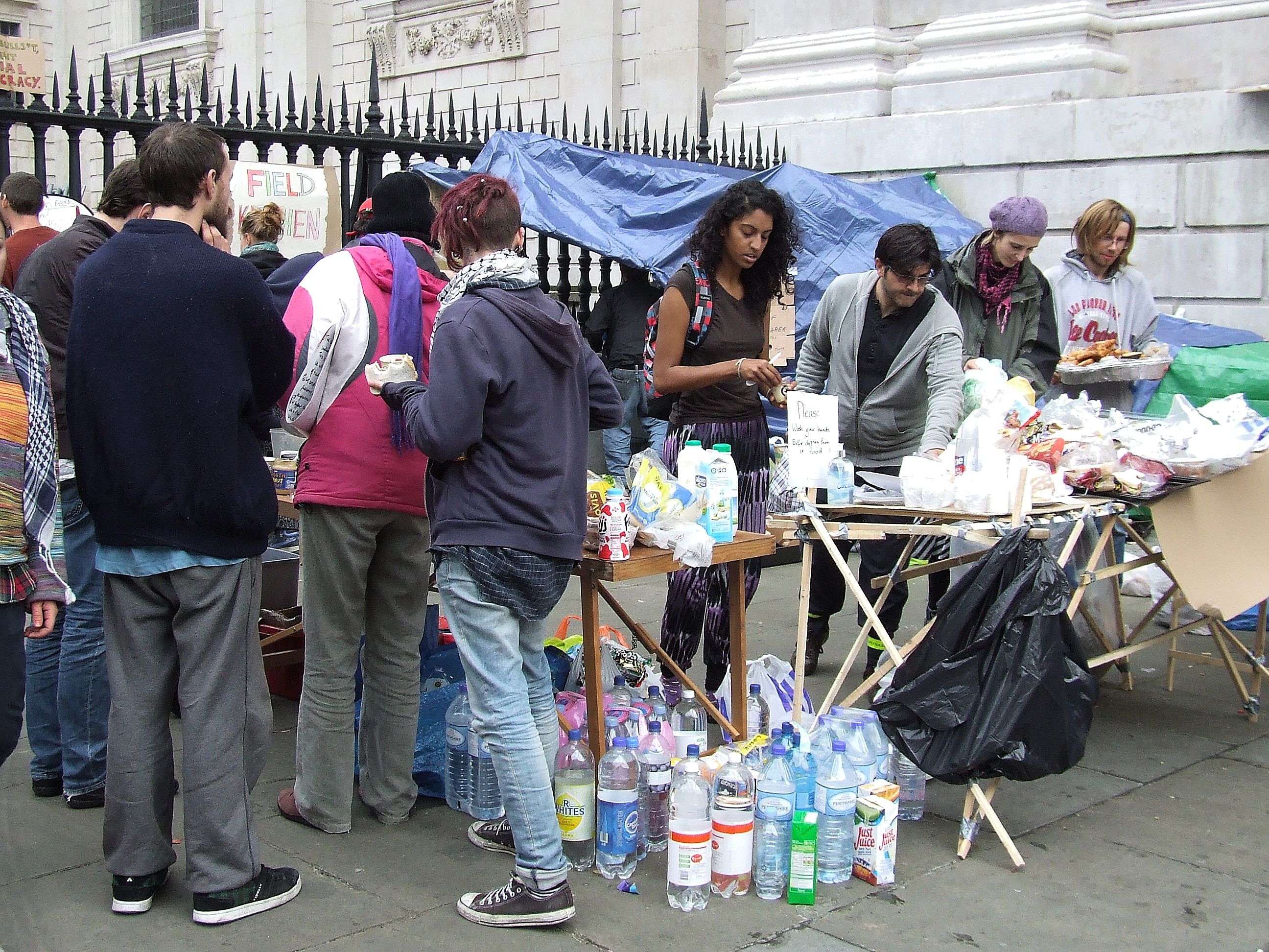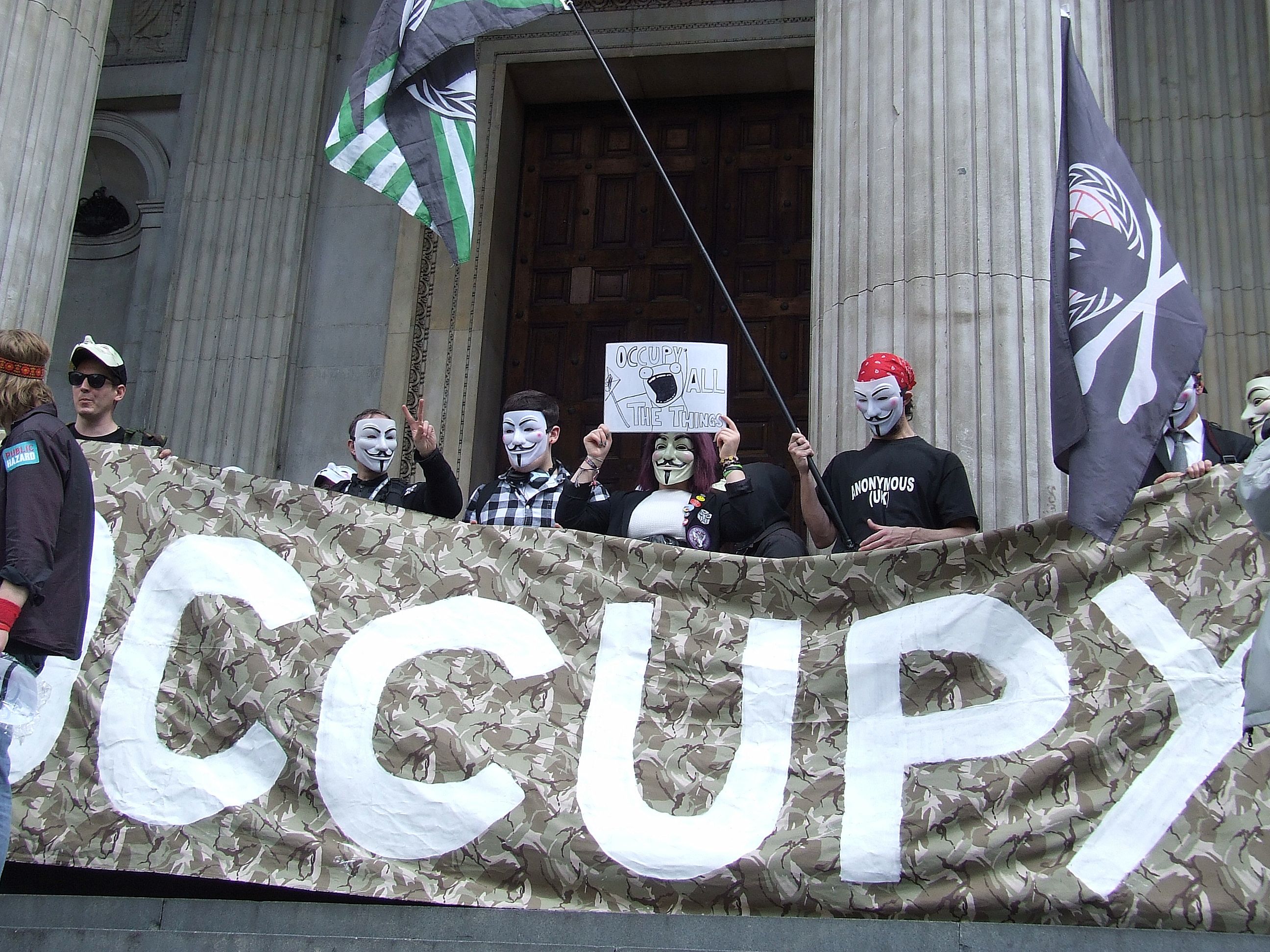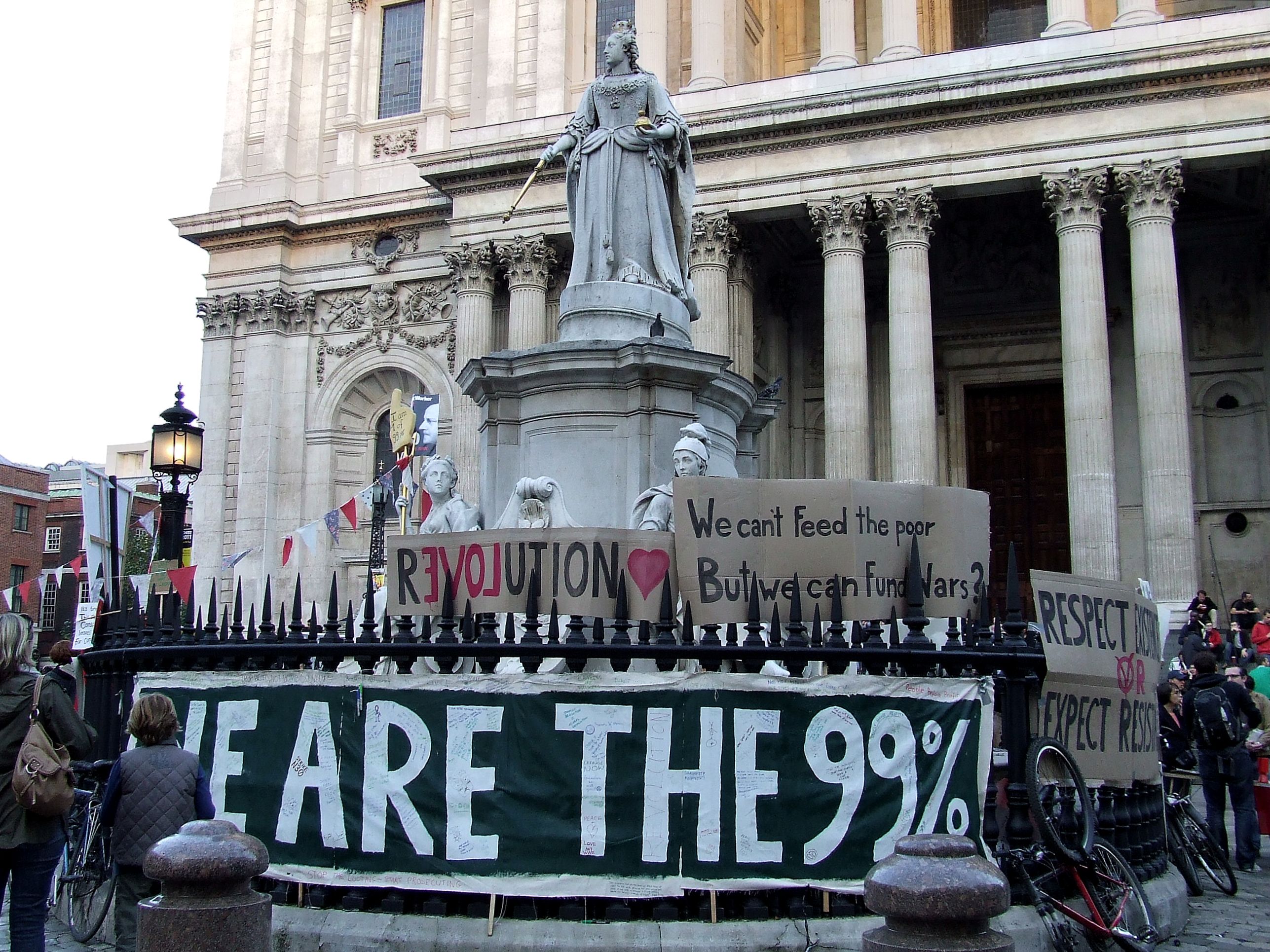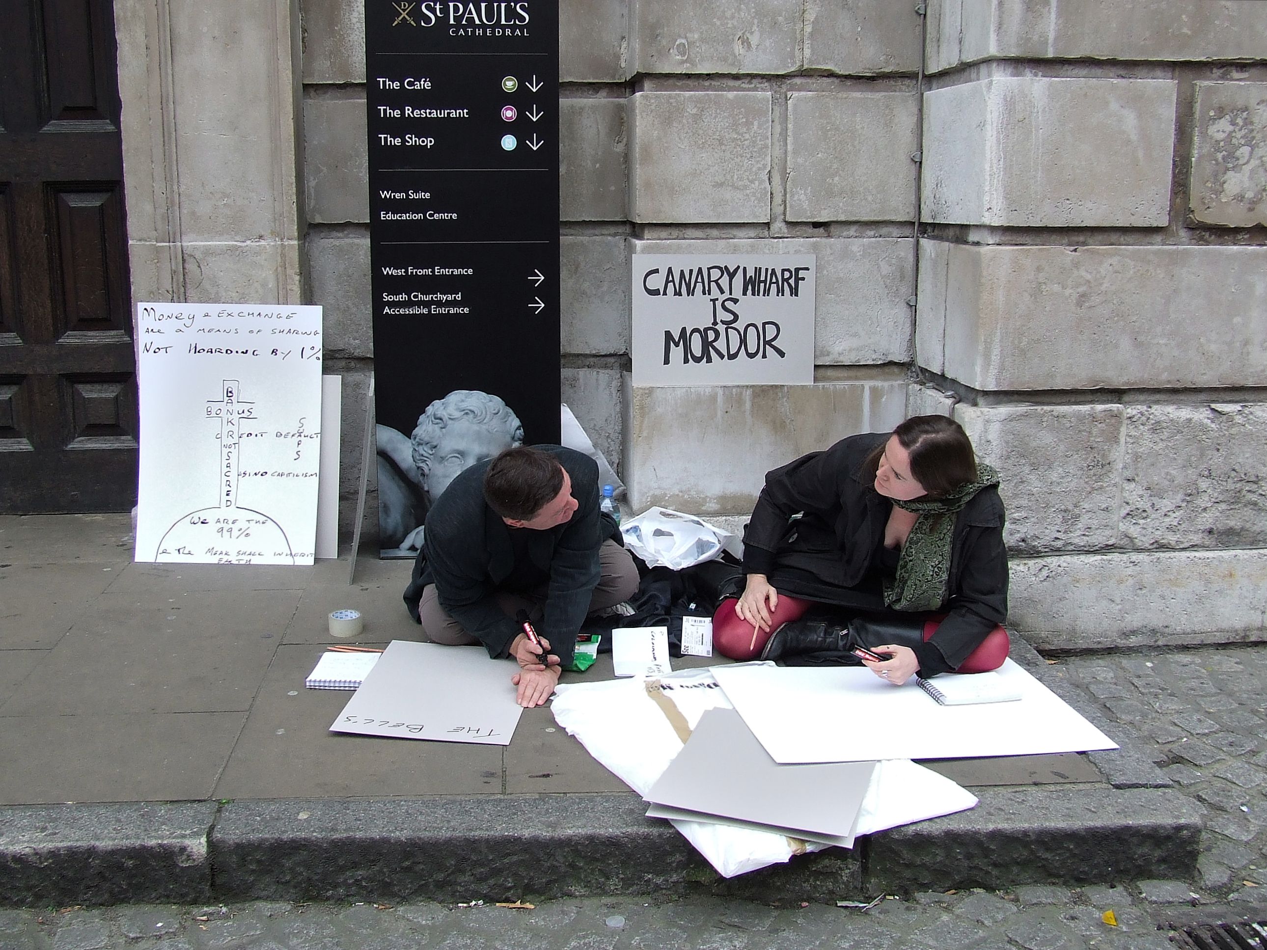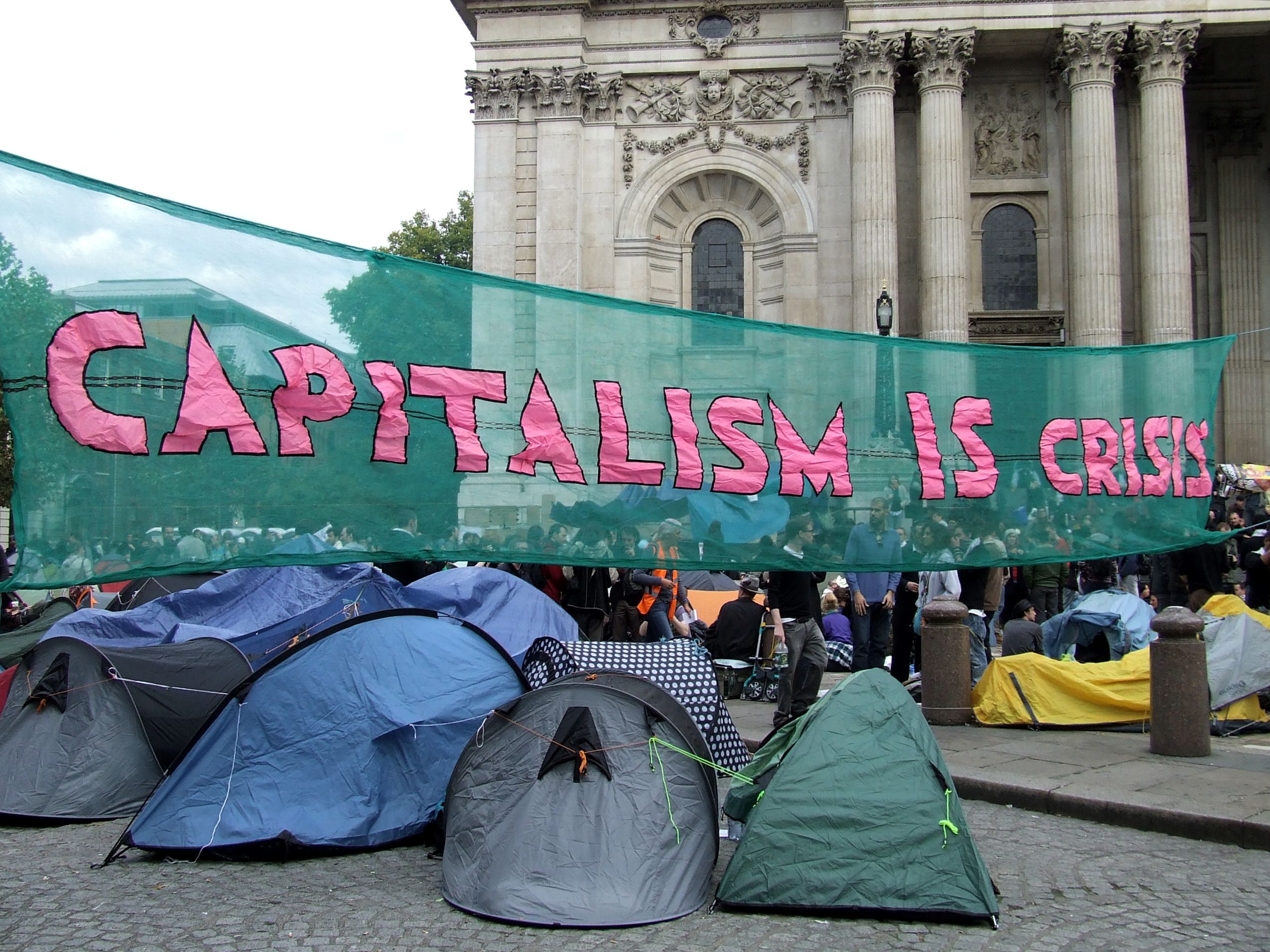 którym nie udało się powstrzymać protestujących przed rozstawieniem niewielkiego miasteczka namiotowego i odbyciem zgromadzenia ogólnego przed siedzibą, jak głosił jeden z transparentów, "Katedry Św. Pawła pieniądza" [