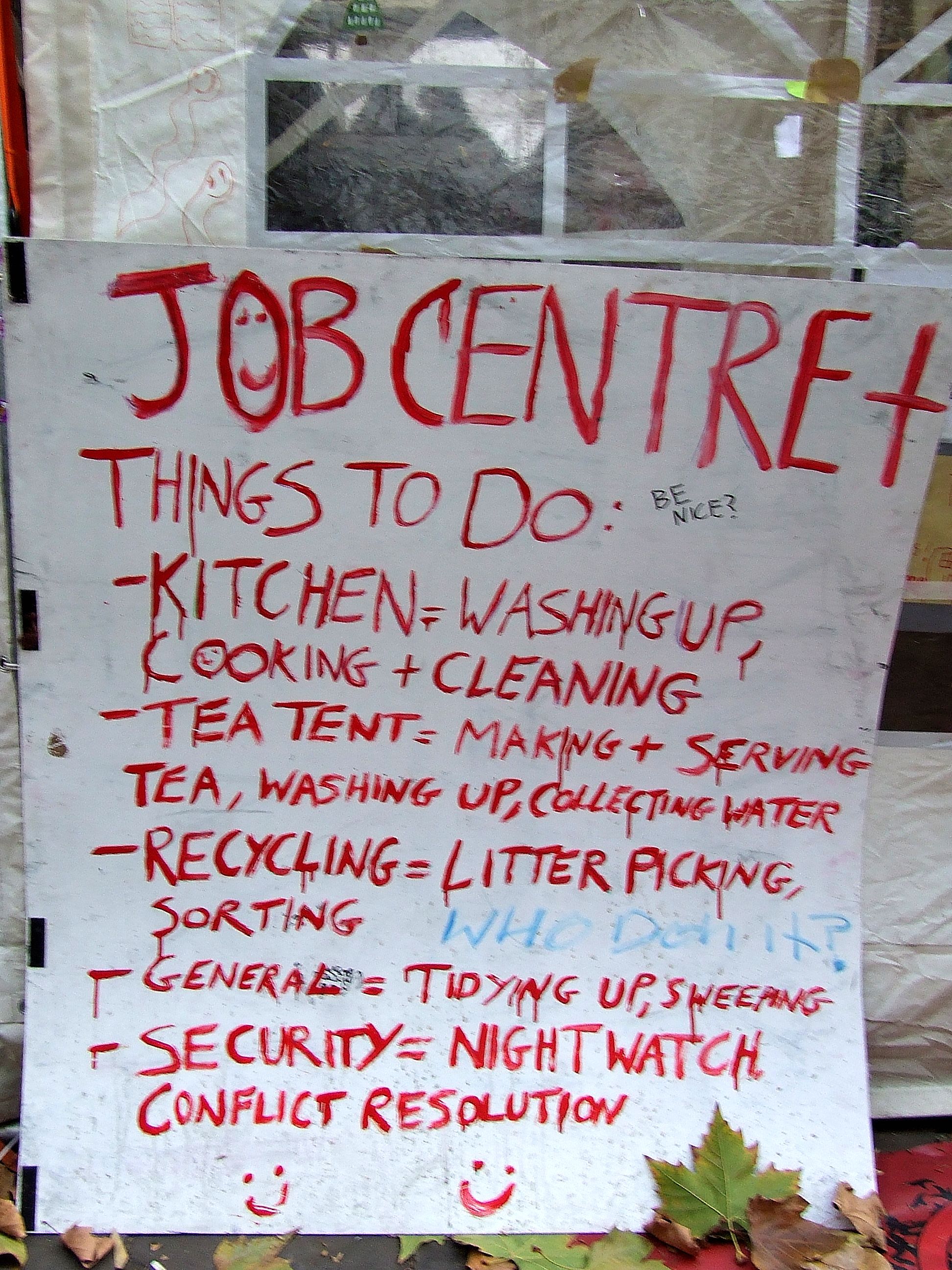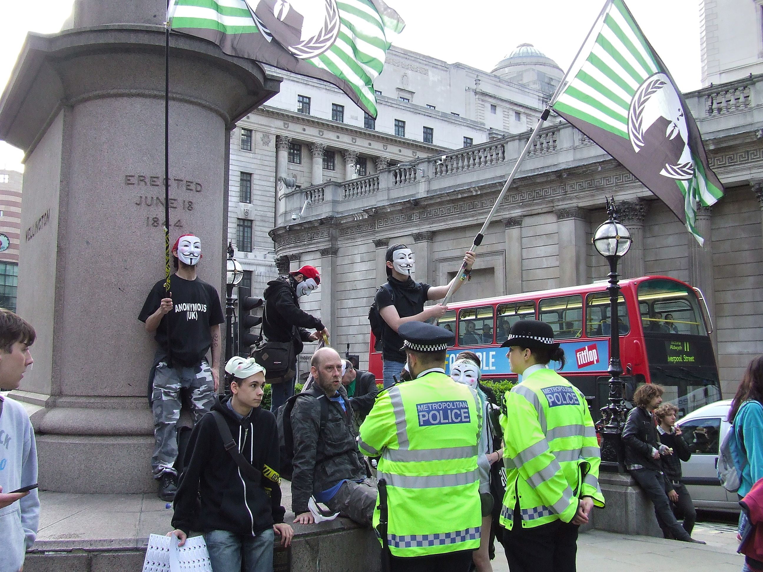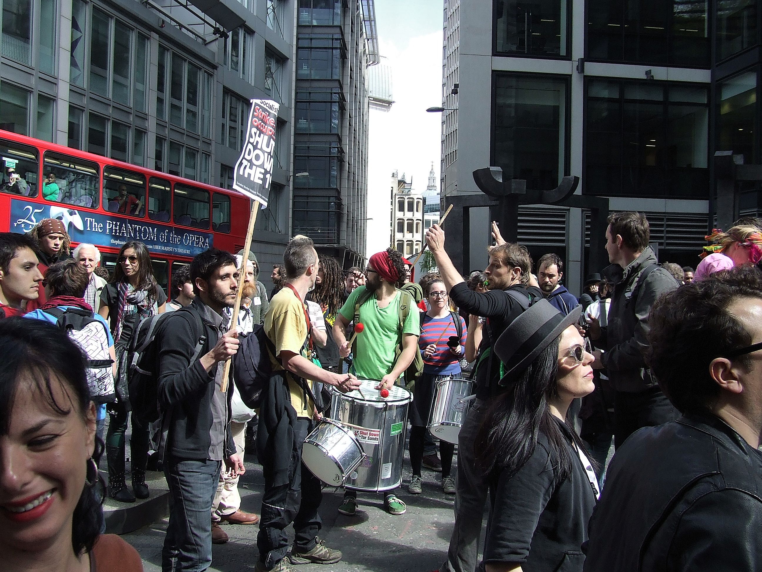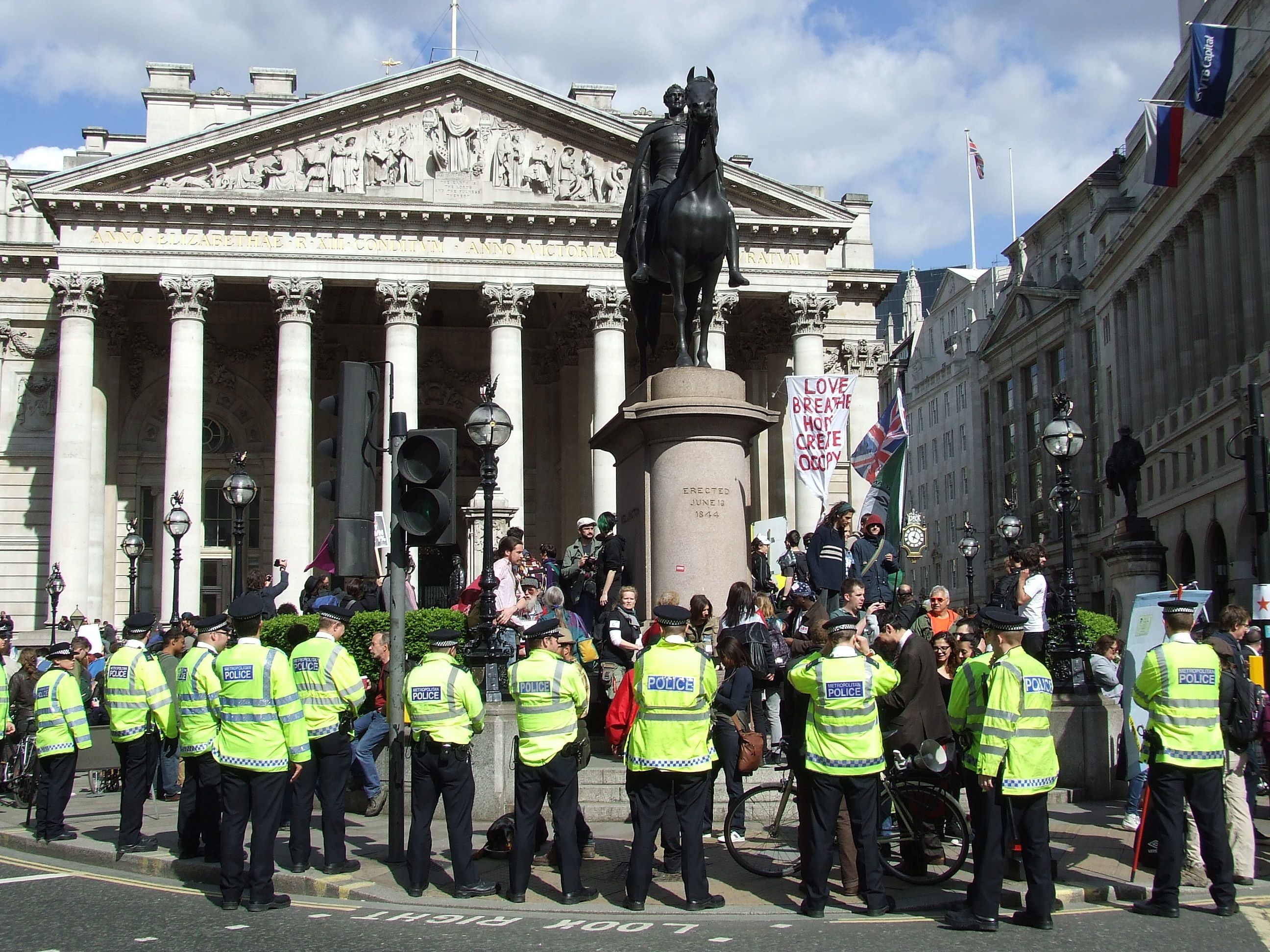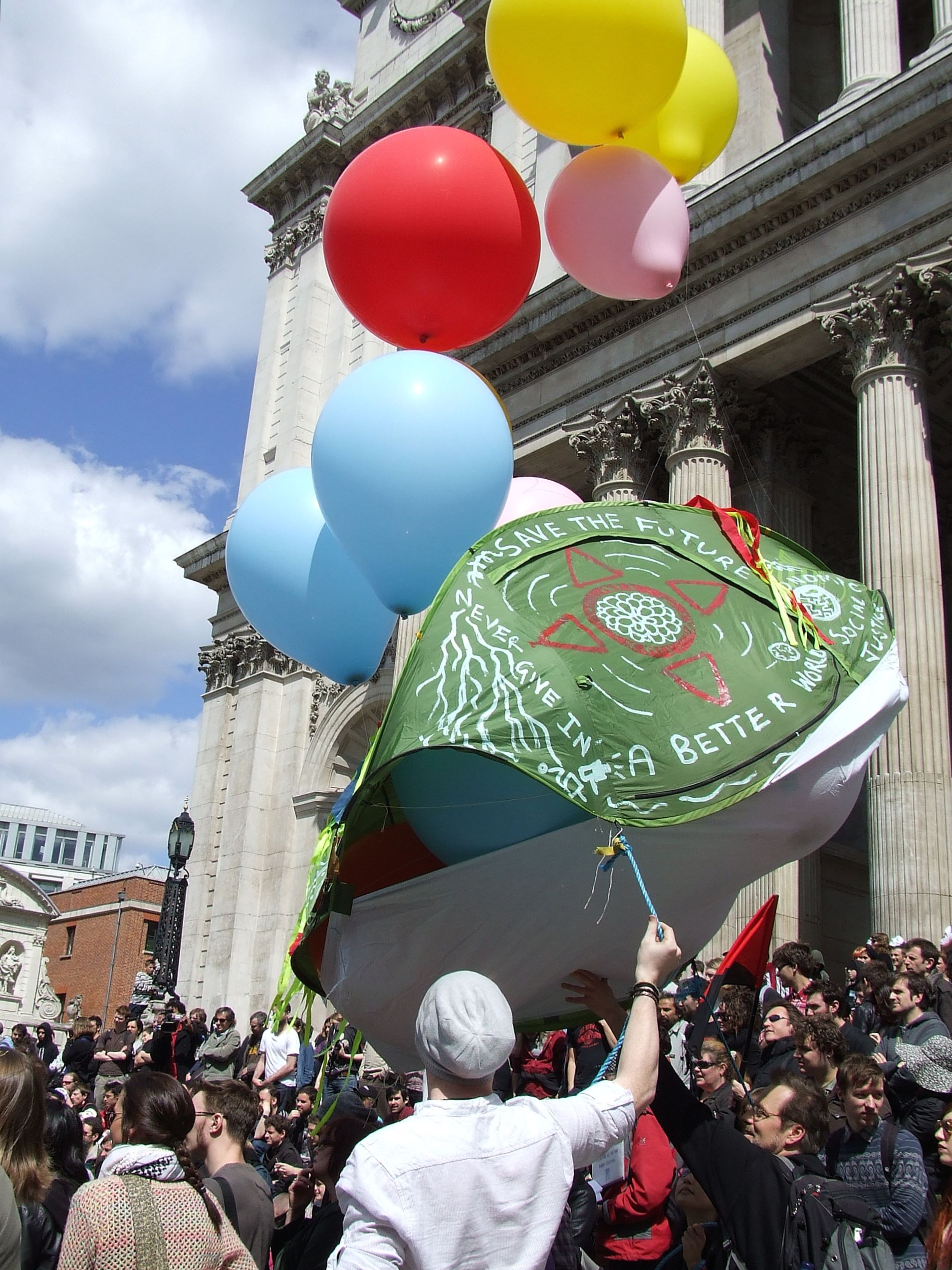 którym nie udało się powstrzymać protestujących przed rozstawieniem niewielkiego miasteczka namiotowego i odbyciem zgromadzenia ogólnego przed siedzibą, jak głosił jeden z transparentów, "Katedry Św. Pawła pieniądza" [